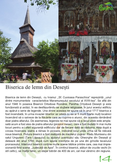 Biserica de lemn din Desești, cu hramul ,,Sf. Cuvioasa Paraschiva” reprezintă ,,unul