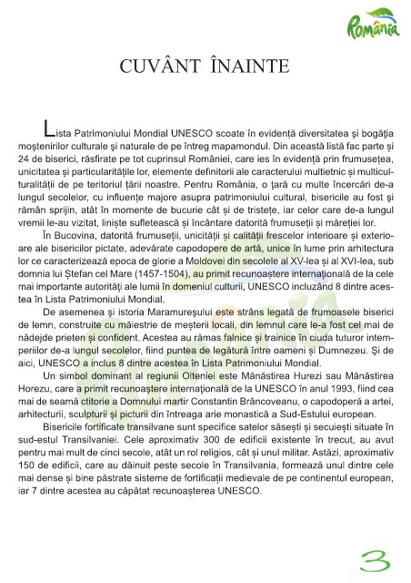 turalității de pe teritoriul țării noastre. Pentru România, o ţară cu multe încercări de-a