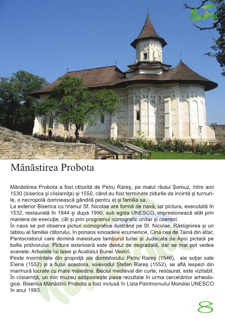 gice. Biserica Mănăstirii Probota a fost inclusă în Lista Patrimoniului Mondial UNESCO