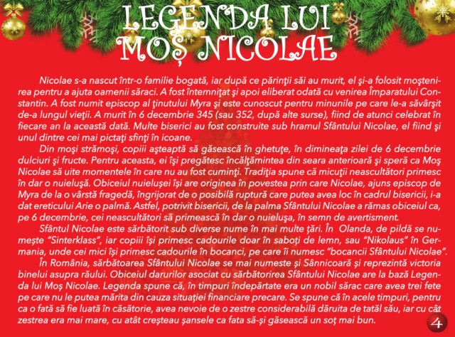 fiecare an la această dată. Multe biserici au fost construite sub hramul Sfântului Nicolae, el fiind şi seama că este urmarit și a luat săcule ul, s-a urcat pe casă și a dat drumul săcule ului, prin hornul