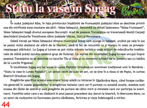 În sudul judeţului Alba, în faţa privitorului împătimit de frumuseţile judeţului Alba se deschide privirii Evenimentul face parte dintr-un şir de ceremonii tradiţionale şi rituri de integrare în comunitate a famil-
